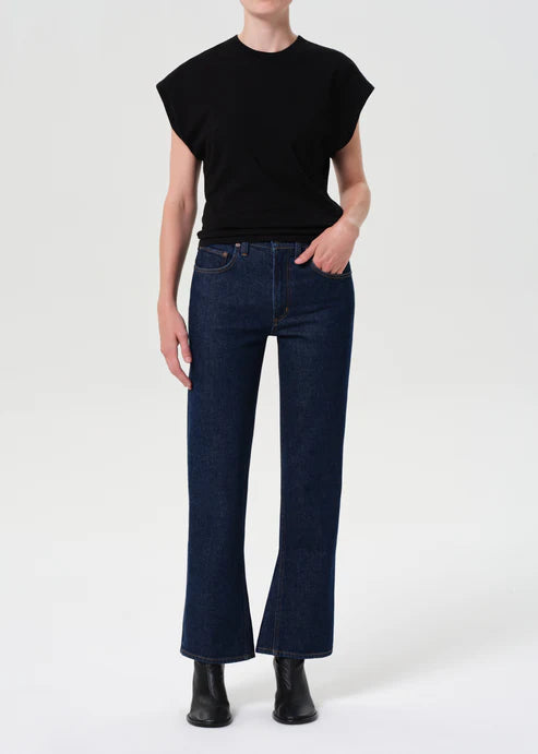 • DETAILS:The Kick Boot Ankle is a mid-rise bootcut with an ankle-grazing inseam. Designed in a true rinsed indigo hue, the comfort-stretch regenerative cotton denim offers a soft hand and all-day ease. Its clean finish makes it a versatile staple—ideal with a simple tee or structured blazer.