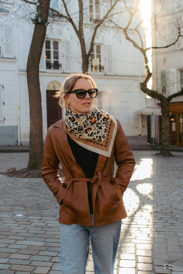Maison Lecomte Flament Leo Beige Camel Cotton Scarf