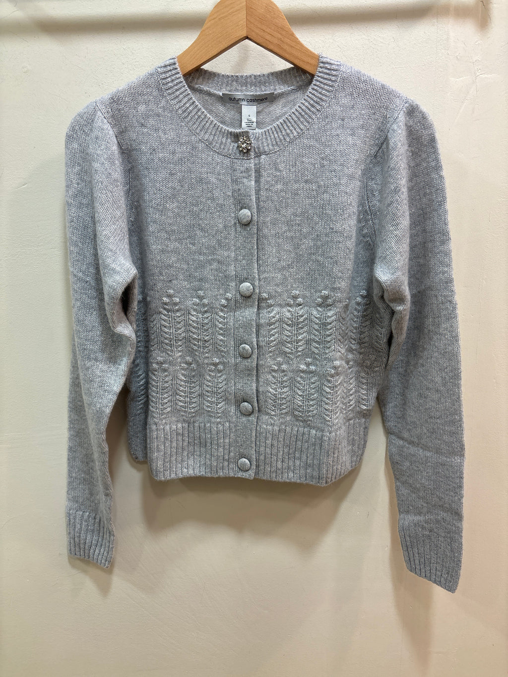 Autumn Cashmere Puff Sleeve Popcorn Stitch Cardigan