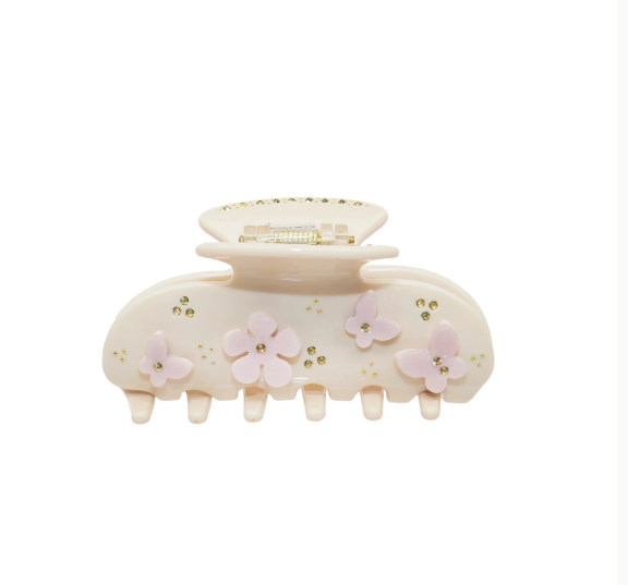 Sweet as can be, this clip is made with beautiful tiny stones and cellulose acetate. Designed with love and ultra-femininity in mind, the sweetheart clip will hold your hair from morning until night. Perfect for a low bun or half-up-half-down look.