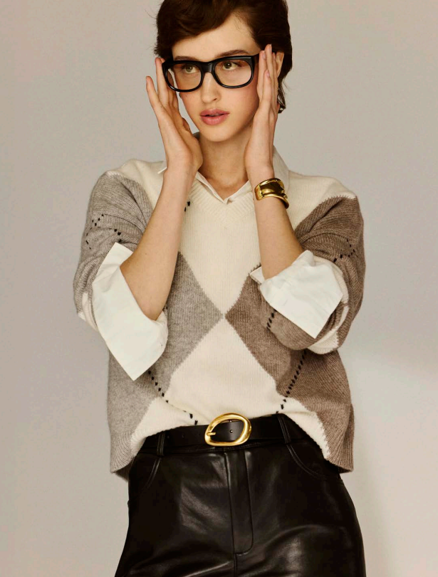 Naadam Premium Cashmino Argyle Intarsia V Neck
