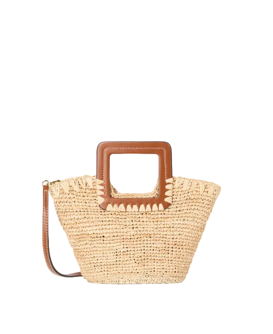 • DETAILS: The Mini Shirley Bucket features an all-raffia design with square leather handle and magnetic closure.