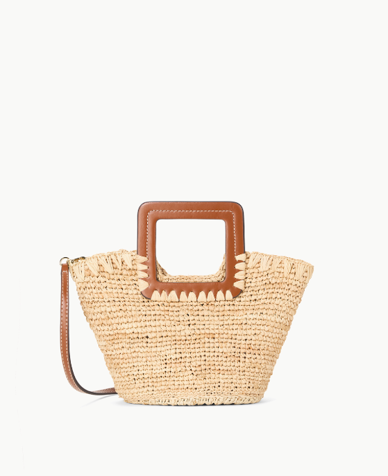 - DETAILS: The Mini Shirley Bucket features an all-raffia design with square leather handle and magnetic closure.